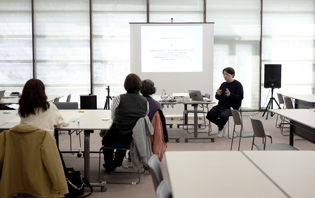 これまで取り組んできたマスタープラン作成のワーキンググループの振り返りからスタート。マスタープランの延長として、「川湯温泉」ではなく「川湯温泉街」のブランディング事業に必要な軸づくりやこれからの未来像を川湯で事業を営む方、川湯の住民の方と一緒に考え、つくることを目的としてレクチャーとワークショップを開催。「温泉まちづくり」をキーワードに、これから変わりゆく川湯温泉街に関わるコミュニケーション活動を議論したり、「川湯温泉街のひと」から本質的な軸となるコトの魅力探しワークショップを実施しました。