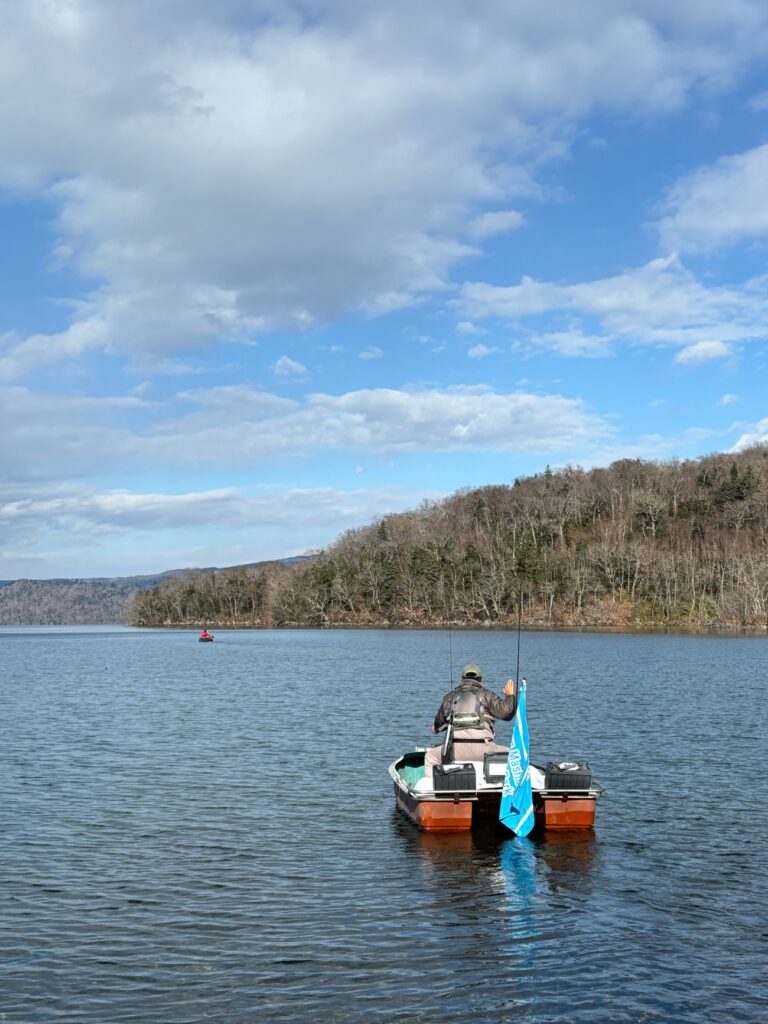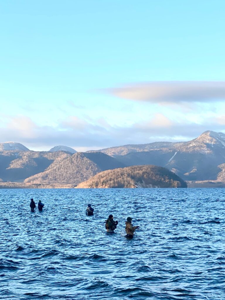 朝からずっと晴れていて、風が無く穏やかな屈斜路湖。アングラーにとっては厳しい湖面。2日目はなかなか渋かったようだ。