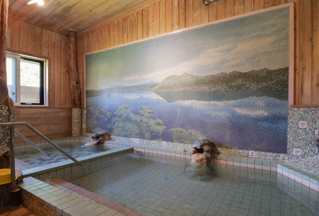 川湯温泉で60年以上もの間、地域内外から愛された川湯公衆浴場を2024年9月に「川湯公衆浴場 湯吉」としてリニューアルオープン。民芸品やなつかしい品が並ぶレトロな空間は、唯一無二の雰囲気。内風呂は左官職人による、タイル装飾が施されています。